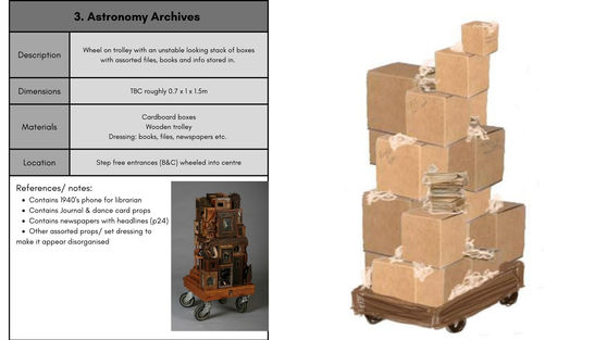For the Orange Tree Theatre in Richmond, London in association with LAMDA (2024). Design for in the round stage within a £200 total design budget. The play explores the Greek myths behind star constellations and is inspired by the legacy of astronomer Annie Jump Cannon. A heartfelt, uplifting play about three women whose lives intertwine across space and time as they grapple to overcome gender roles, societal expectations, and uncertainty in their pursuit of the stars